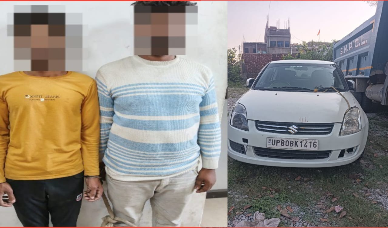 चोरी की स्विफ्ट डिजायर कार के साथ दो युवक गिरफ्तार