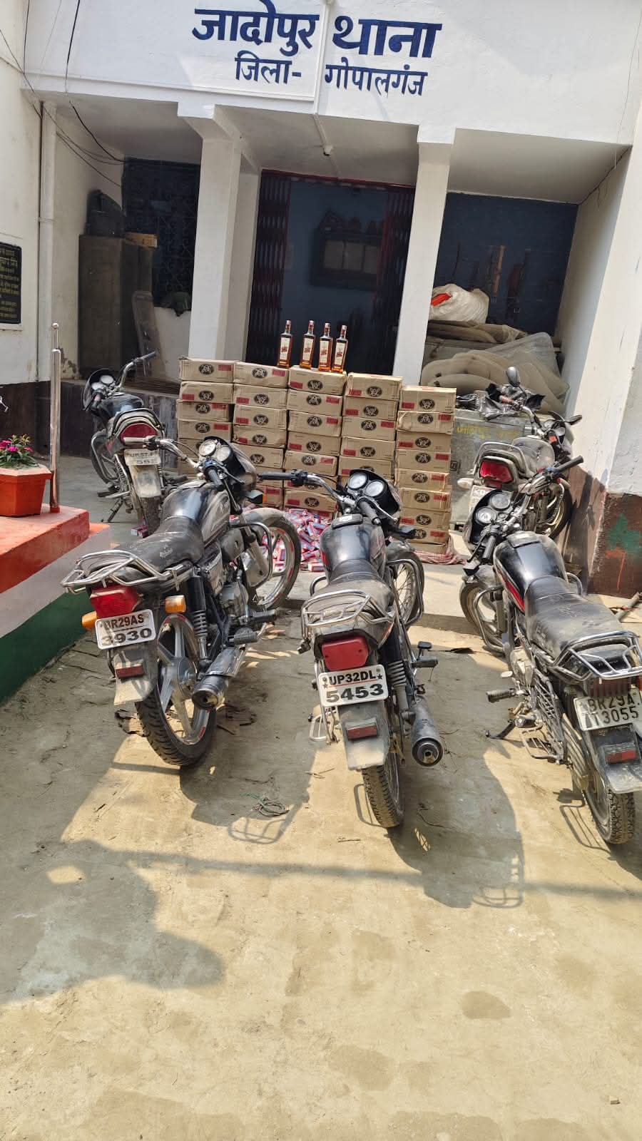 पुलिस कार्रवाई के दौरान ग्राम रामपुर टंगराही, गंडक नदी के किनारे दियारा क्षेत्र से 05 मोटरसाइकिलों पर बोरे में लदी कुल 470 लीटर शराब जब्त की गई। इसमें 467 लीटर देशी शराब और 03 लीटर विदेशी शराब शामिल है।