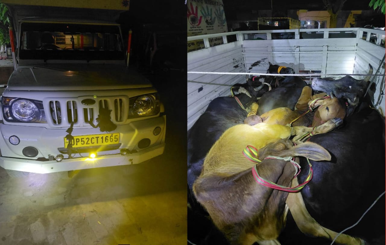 8 मवेशी व 95 लीटर देसी शराब बरामद, पिकअप जब्त तस्कर फरार