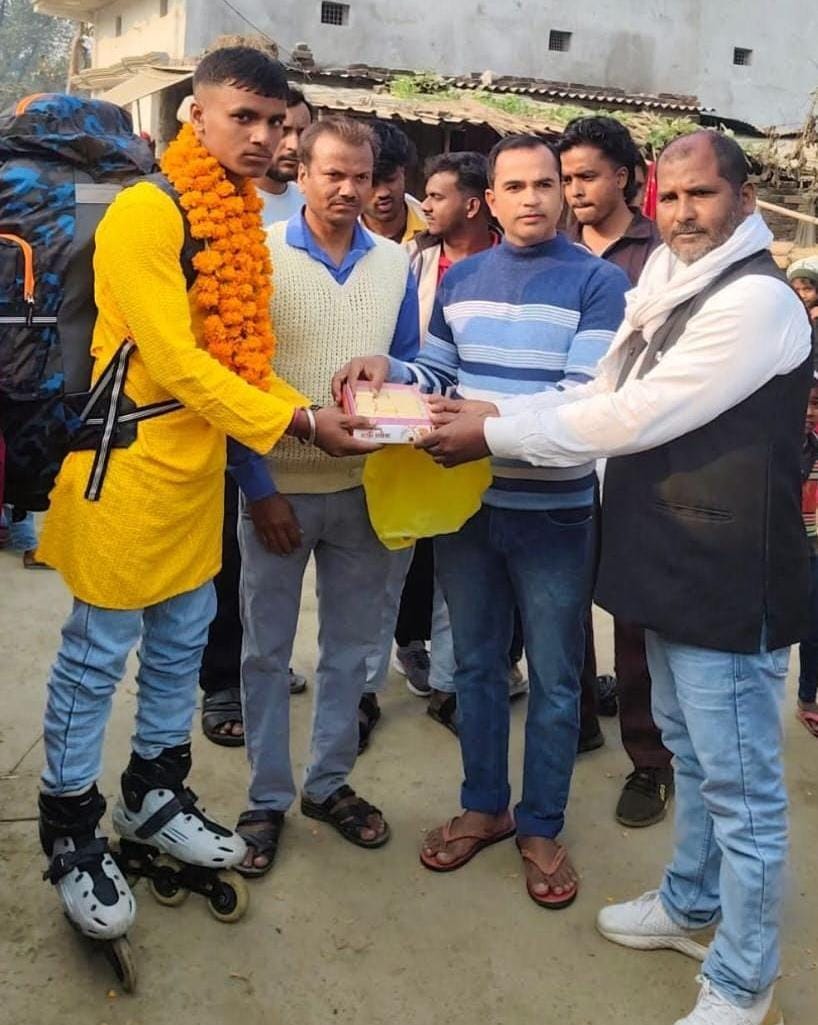 स्थानीय प्रखंड के मुरारपट्टी के युवा आदित्य कुमार ने महाशिवरात्रि के पावन पर्व पर एक ऐसी प्रेरणादायक यात्रा की शुरुआत की है, जो न केवल उनकी आस्था की गहराई दर्शाती है, बल्कि मानवता और सद्भावना की एक अनुपम मिसाल भी पेश करती है। नौतन प्रखंड अंतर्गत मुरारपट्टी गांव के इस दृढ़ संकल्पी युवा ने रोलर स्केटिंग के माध्यम से उत्तर प्रदेश के पवित्र तीर्थ वृंदावन तक पहुंचने का बीड़ा उठाया है। यह यात्रा मात्र एक धार्मिक अभियान नहीं, बल्कि साहस, विश्वास और सामाजिक एकता का जीवंत प्रतीक बन चुकी है। इस अनोखी यात्रा की शुरुआत में सबसे महत्वपूर्ण भूमिका मुरारपट्टी पंचायत के मुखिया हवलदार अंसारी ने निभाई है। गंगा-जमुनी तहजीब और सर्वधर्म समभाव के प्रतीक मुखिया ने बिना किसी भेदभाव के इस हिंदू युवा की धार्मिक आकांक्षा को सम्मान देते हुए उसे पूर्ण सहयोग प्रदान किया। महाशिवरात्रि के शुभ अवसर पर उन्होंने अपने निजी वाहन से आदित्य को थावे दुर्गा मंदिर तक पहुंचाया, जहां उन्होंने स्वयं पूजन सामग्री, फलाहार, जल और अन्य आवश्यक व्यवस्थाएं पूरी कीं।