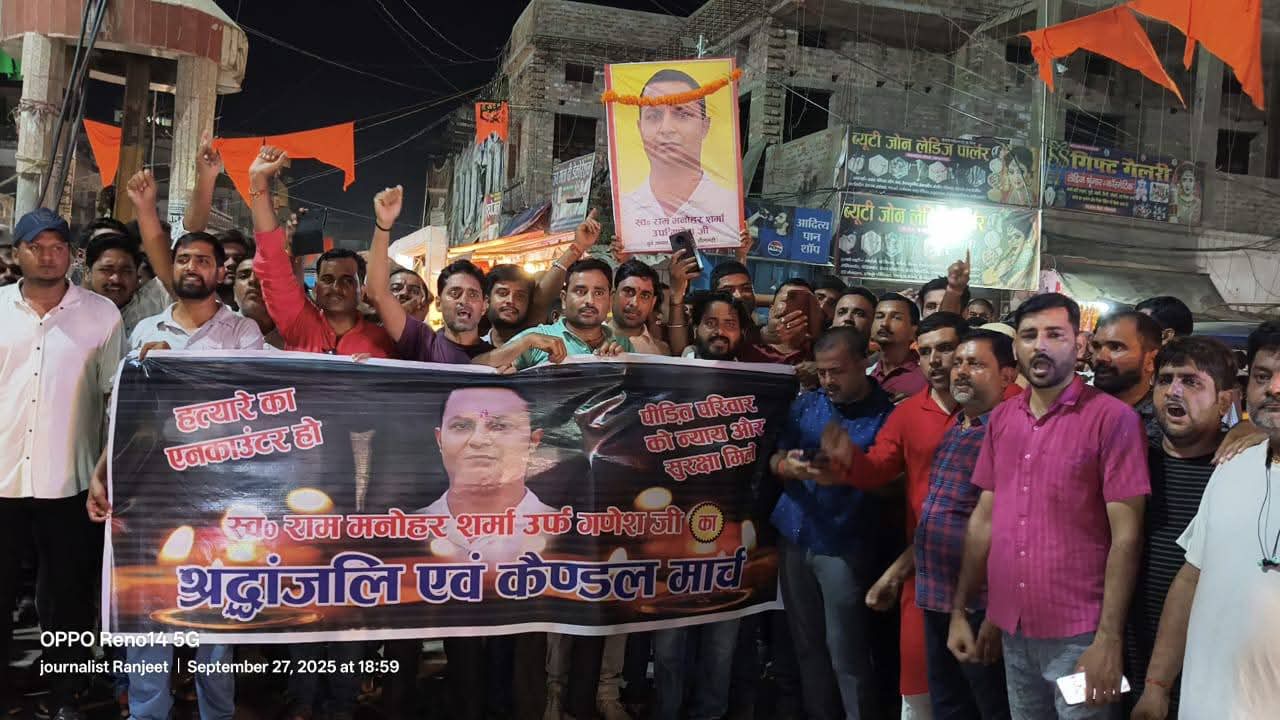 ब्रह्मर्षि सेना पूर्व अध्यक्ष स्वर्गीय राम मनोहर शर्मा को उनके पैतृक गांव लगमा में दरवाजे पर ही अपराधियों ने गोली मारकर हत्या कर दी। इसी आक्रोश में यह कैंडल मार्च सह आक्रोश मार्च के रूप में निकाला गया। जो वीर कुंवर सिंह चौक से अमर शहीद मेजर चंद्रभूषण द्विवेदी कारगिल चौक तक पहुंचा। जहां पुष्पांजलि अर्पीत कर श्रद्धांजलि दी गई।