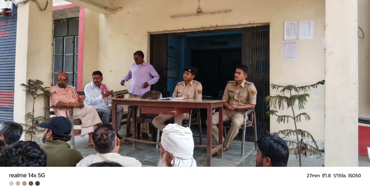 बैठक का उद्देश्य त्योहारों को शांतिपूर्ण, सुरक्षित और सौहार्दपूर्ण माहौल में संपन्न कराना है, ताकि क्षेत्र में भाईचारे की मिसाल कायम रह सके। बैठक मे एस आई ब्रजेश कुमार रामचंद्र तिवारी उमेश गुप्ता के साथ-साथ क्षेत्र के जनप्रतिनिधियों में बैकुंठपुर पंचायत के सरपंच अशोक पाठक समाजसेवी दिनेश मिश्रा अनवर अंसारी भेड़िया पंचायत के बीडीसीबी रमेश राय सहित सैकड़ो की संख्या में लोग मौजूद रहे