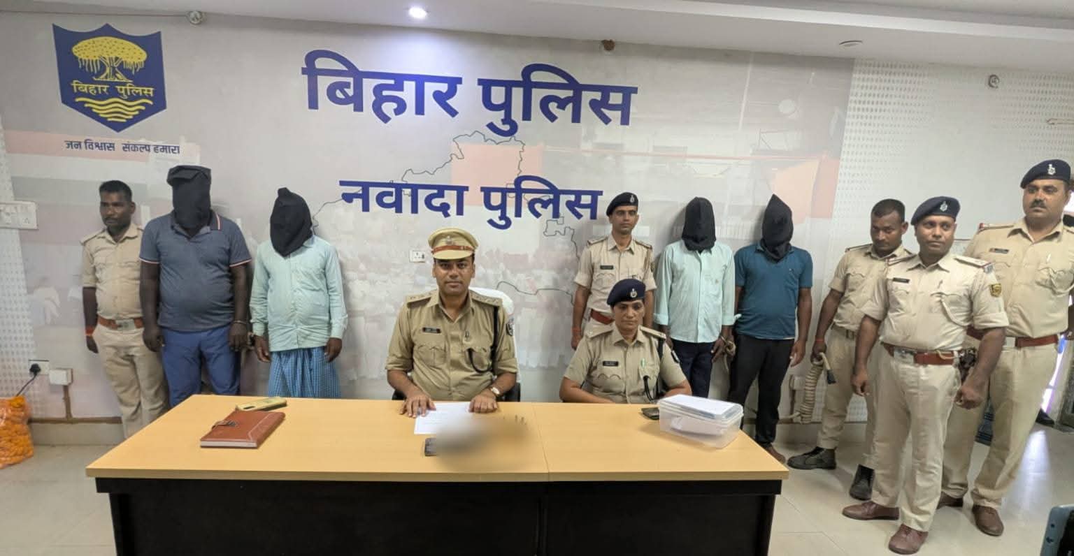 नवादा में पुलिस ने सक्रिय कार्रवाई करते हुए 4 अपराधियों को गिरफ्तार किया है। नारदीगंज थाने को 10 सितंबर को सूचना मिली थी कि ग्राम बुच्ची में कुछ अपराधी किसी घटना को अंजाम देने की योजना बना रहे हैं।SP अभिनव धीमान के निर्देश पर थाना प्रभारी प्रभा कुमारी के नेतृत्व में पुलिस ने कार्रवाई की। DSP राहुल कुमार की देखरेख में गठित टीम ने छापेमारी कर रंजीत कुमार, अशोक कुमार, सुरेंद्र साव और प्रमोद कुमार को पकड़ा। सभी आरोपी दक्षिणी बुच्ची, नारदीगंज के निवासी हैं। एक देसी कट्टा, 10 जिंदा कारतूस और 3 मोबाइल फोन बरामद,पुलिस ने आरोपियों के पास से एक देसी कट्टा, 10 जिंदा कारतूस और 3 मोबाइल फोन बरामद किए। नारदीगंज थाने में काण्ड संख्या 342/25 के तहत मामला दर्ज किया गया है। पूछताछ के बाद सभी आरोपियों को न्यायिक हिरासत में भेज दिया गया है। आरोपियों पर आर्म्स एक्ट की धारा 25(1-b)a और 35/26 के तहत कार्रवाई की गई है।