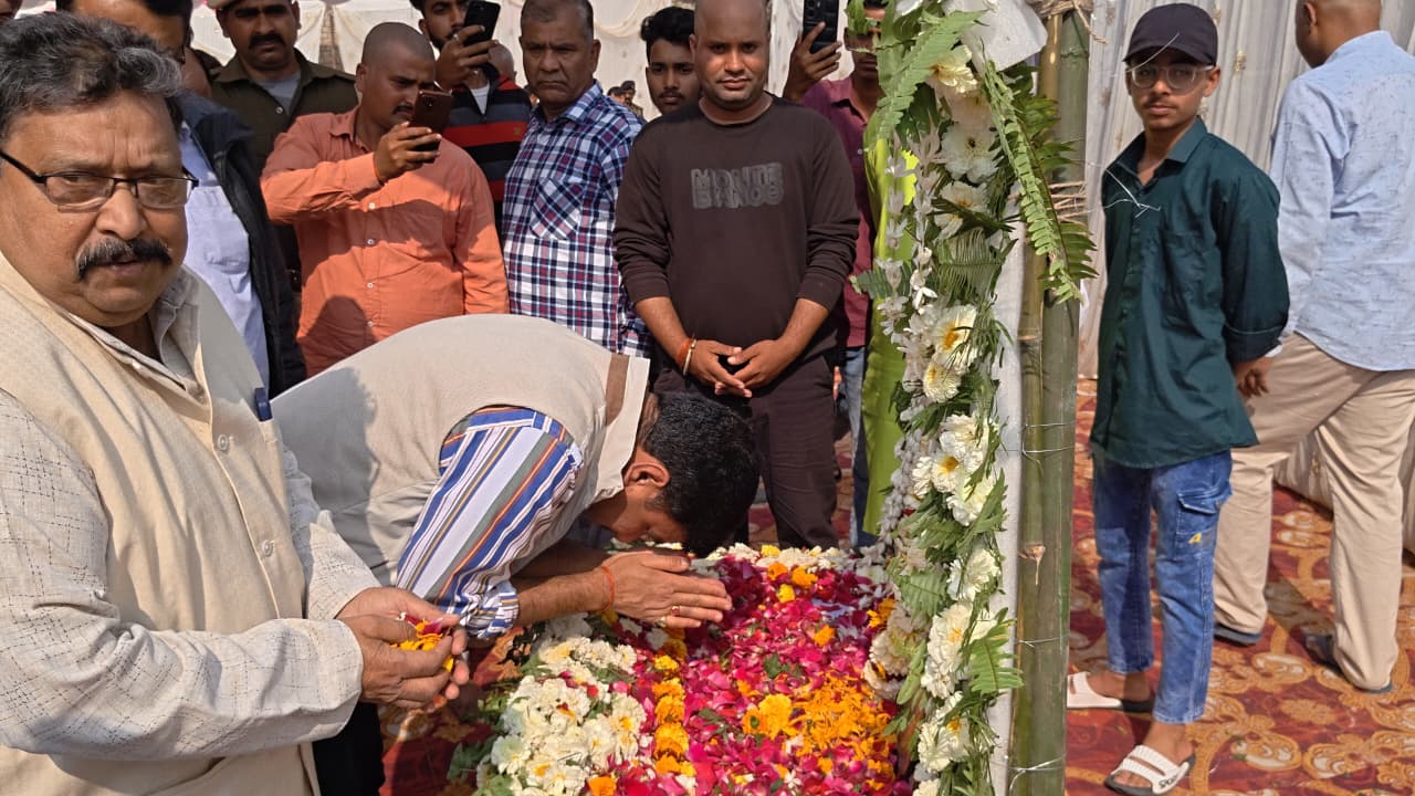 स्वतंत्रता सेनानी उमापति मिश्र के श्राद्ध में शामिल हुए बाहुबली विधायक अमरेन्द्र कुमार पाण्डेय उर्फ पप्पू पाण्डेय