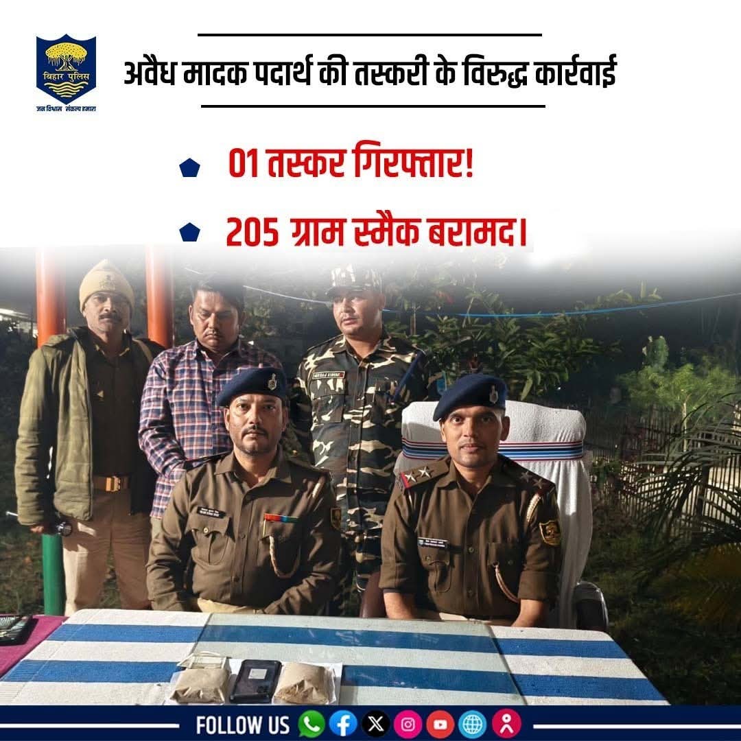 अररिया में बिहार पुलिस की बड़ी कार्रवाई, 205 ग्राम स्मैक के साथ तस्कर गिरफ्तार