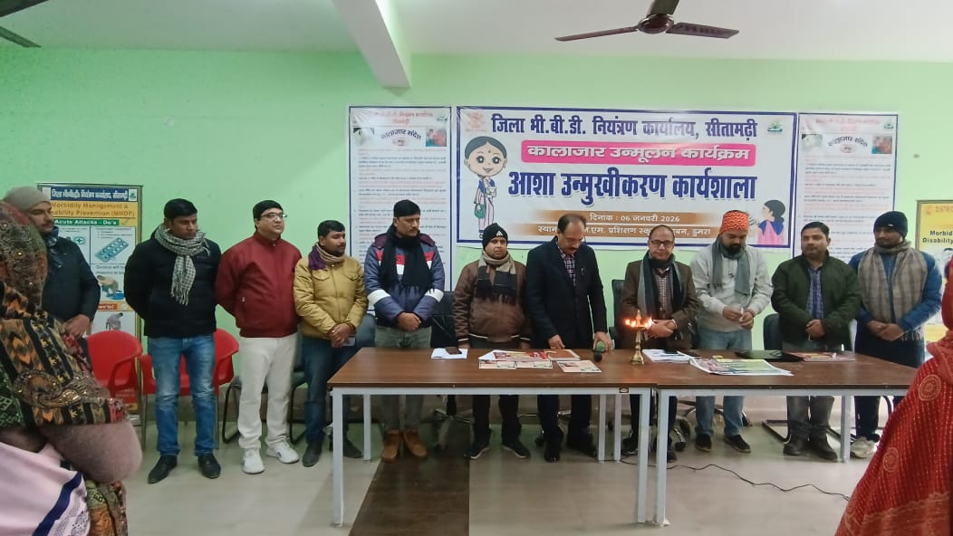 सीतामढ़ी जिले में वेक्टर जनित रोगों के उन्मूलन की दिशा में एक महत्वपूर्ण पहल के तहत कालाजार तथा आगामी फाइलेरिया नियंत्रणार्थ प्रस्तावित “सर्वजन दवा सेवन कार्यक्रम” (दिनांक 10 फरवरी 2026 से) को सफल बनाने के उद्देश्य से आशा कर्मियों के प्रशिक्षण की व्यापक शुरुआत की गई। इस प्रशिक्षण कार्यक्रम का शुभारंभ जिला सिविल सर्जन सीतामढ़ी डॉ. अखिलेश कुमार, वेक्टर बॉर्न डिजीज (VBD) नियंत्रण पदाधिकारी डॉ. आर. के. यादव तथा पीरामल फाउंडेशन की टीम द्वारा संयुक्त रूप से दीप प्रज्वलन कर किया गया।
