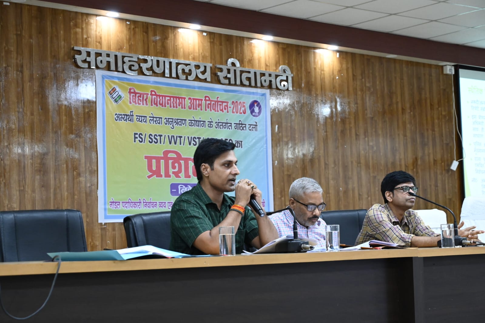 आगामी बिहार विधानसभा आम निर्वाचन–2025 को स्वतंत्र, निष्पक्ष एवं पारदर्शी तरीके से संपन्न कराने की तैयारी जिले में तेज़ी से चल रही है। इसी क्रम में आज समाहरणालय सभाकक्ष, सीतामढ़ी में अभ्यर्थी व्यय लेखा अनुश्रवण कोषांग के अंतर्गत गठित विभिन्न दलों—FS (Flying Squad), SST (Static Surveillance Team), VVT (Video Viewing Team), VST (Video Surveillance Team), AT (Accounting Team) एवं AEO (Assistant Expenditure Observer)—का प्रशिक्षण आयोजित किया गया।