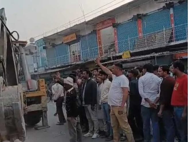 सड़क अतिक्रमण मुक्त को लेकर बड़हरिया बाजार में दूसरे दिन भी गरजा बुल्डोजर