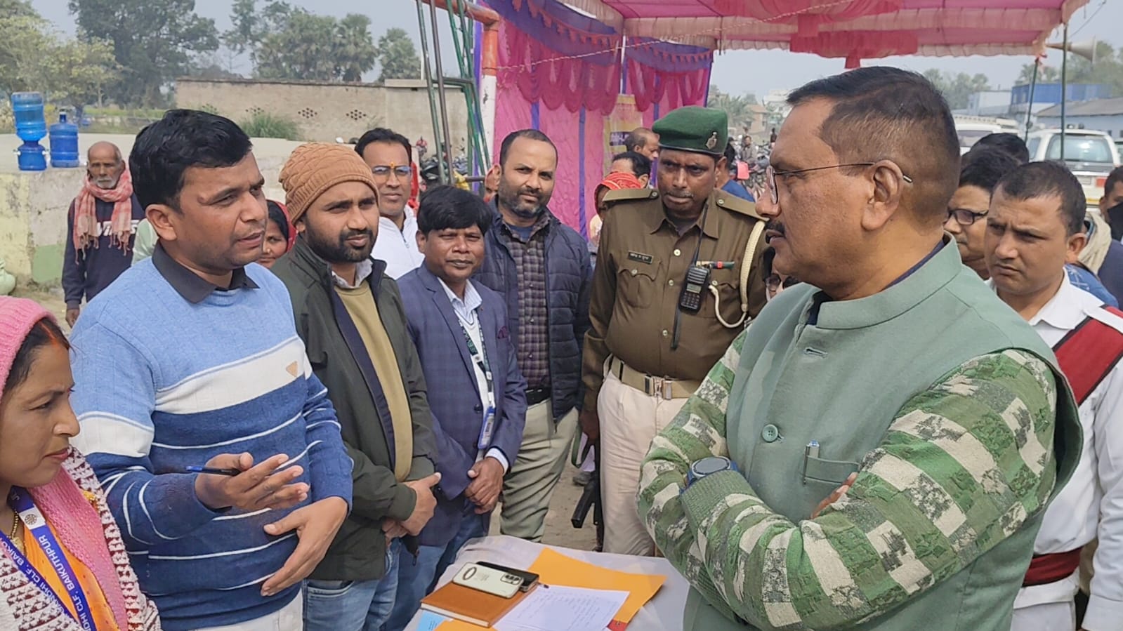 आज दिनांक 31 जनवरी 2026 को प्रशासन जनता के द्वार कार्यक्रम का आयोजन रेवतीथ उच्च माध्यमिक विद्यालय, बैकुंठपुर के प्रांगण में सफलतापूर्वक किया गया। इस कार्यक्रम का मुख्य उद्देश्य आम जनता की समस्याओं को सीधे सुनना तथा उनका त्वरित एवं प्रभावी समाधान सुनिश्चित करना रहा। कार्यक्रम में माननीय विधायक श्री मिथिलेश तिवारी एवं जिला पदाधिकारी श्री पवन कुमार सिन्हा की गरिमामयी उपस्थिति रही।