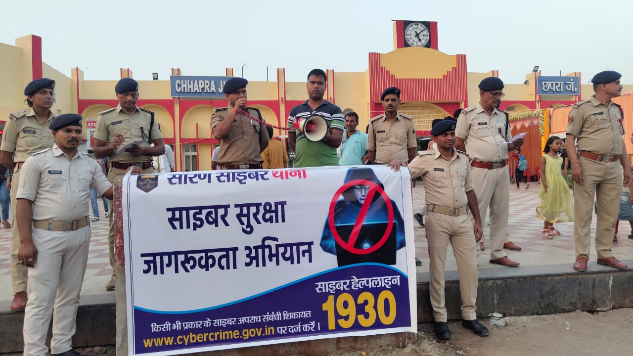 सारण पुलिस द्वारा आम जनमानस को साइबर अपराध से सुरक्षित रखने के उद्देश्य से आज छपरा जंक्शन परिसर में साइबर सुरक्षा जागरूकता अभियान चलाया गया। इस अभियान का आयोजन सारण साइबर थाना द्वारा किया गया, जिसमें साइबर थाना के पदाधिकारी एवं कर्मी, साथ ही जीआरपी (Government Railway Police) और आरपीएफ (Railway Protection Force) के अधिकारी-कर्मियों ने संयुक्त रूप से भाग लिया।
