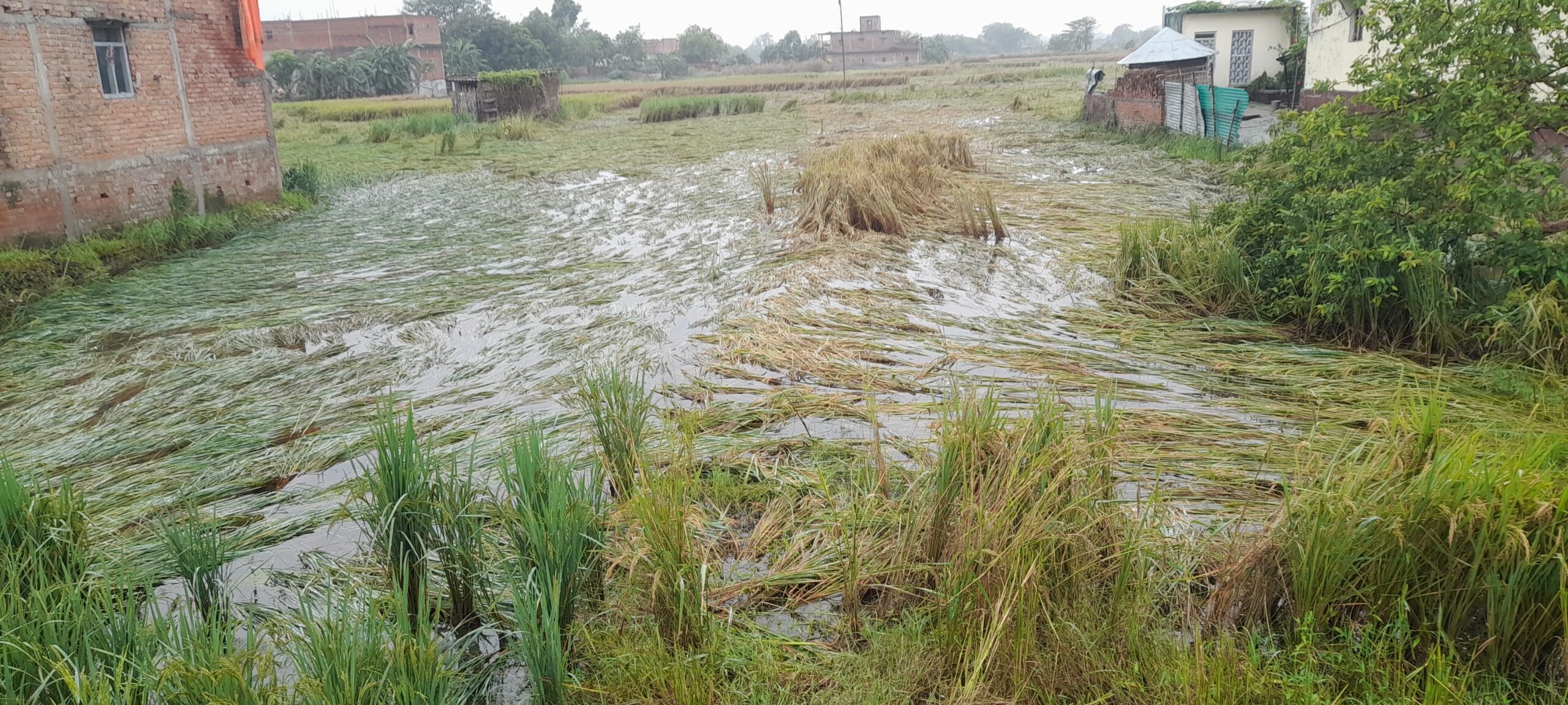 नौतन में मोंथा तूफान ने मचाई तबाही, सैकड़ों एकड़ में लगी धान की फसल बर्बाद