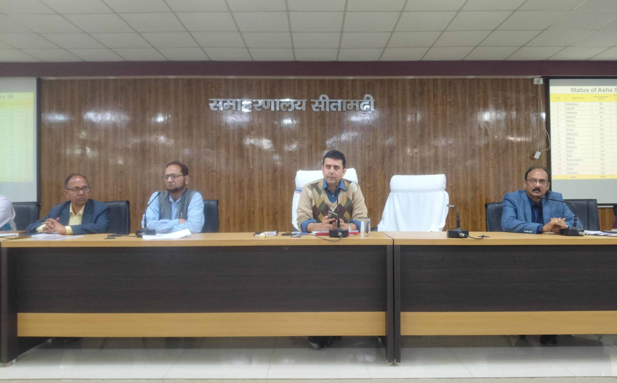 जिला पदाधिकारी रिची पाण्डेय की अध्यक्षता में स्वास्थ्य विभाग की एक विस्तृत समीक्षात्मक बैठक का आयोजन परिचर्चा भवन, सीतामढ़ी में किया गया। बैठक का उद्देश्य जिले में संचालित स्वास्थ्य कार्यक्रमों की प्रगति की समीक्षा करना तथा आगामी महत्वपूर्ण अभियानों की तैयारियों को अंतिम रूप देना रहा।