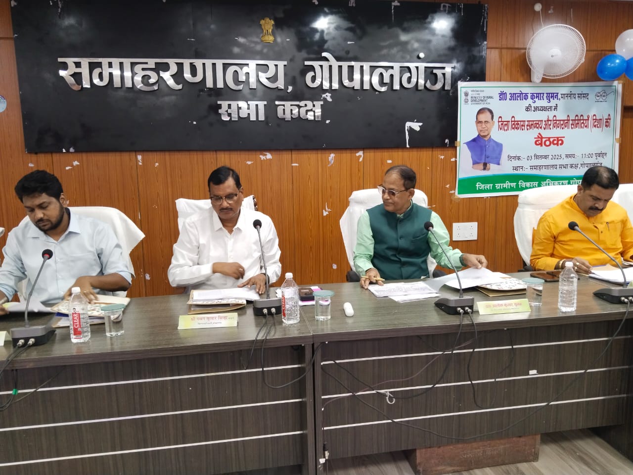 आज जिला समाहरणालय सभा कक्ष में माननीय सांसद गोपालगंज श्री आलोक कुमार सुमन की अध्यक्षता में जिला विकास समन्वय एवं निगरानी समिति (दिशा) की महत्वपूर्ण बैठक आयोजित की गई।