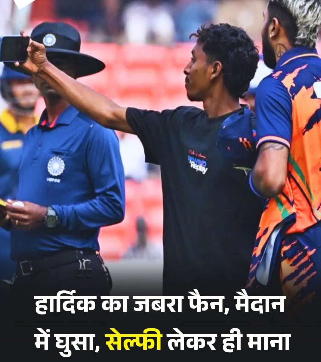 भारतीय क्रिकेट टीम के स्टार ऑलराउंडर हार्दिक पांड्या ने चोट के बाद मैदान पर धमाकेदार वापसी की है। सैयद मुश्ताक अली ट्रॉफी में बड़ौदा की तरफ से खेलते हुए उन्होंने पंजाब के खिलाफ शानदार पारी खेली। इस पारी के दौरान पांड्या का एक जबरा फैन भी सामने आया, जिसने सुरक्षा घेरा तोड़कर उनके पास पहुंचने की कोशिश की।