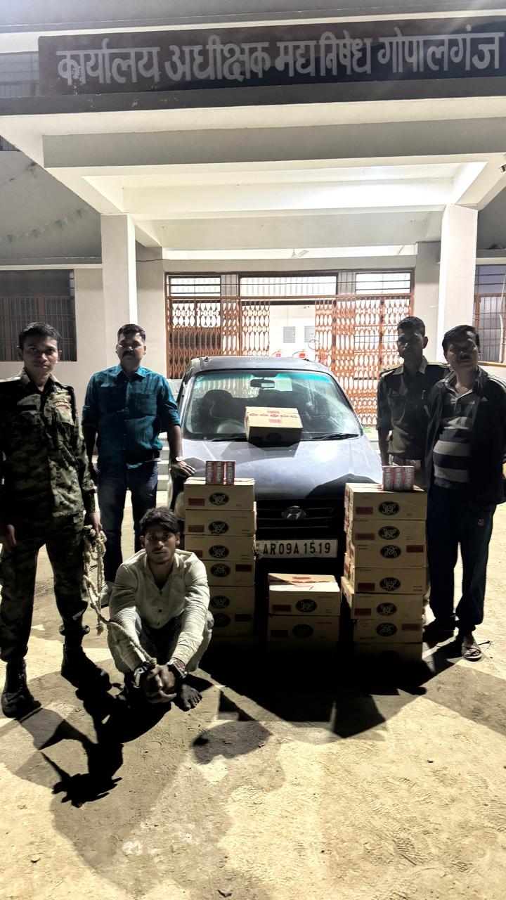 गोपालगंज :- 18 कार्टन देशी शराब के साथ कार सवार एक तस्कर गिरफ्तार