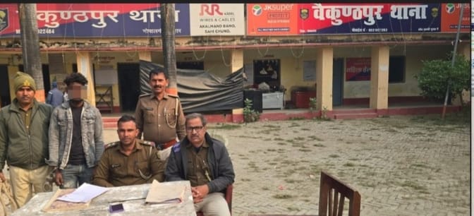 गोपालगंज=पुलिस ने बड़ी करवाई करते हुए पुर्व में लूट, डकैती,और आर्म्स एक्ट एक अपराधी को किया गिरफ्तार।बैकुंठपुर थाने की पुलिस ने महमदपुर थाना क्षेत्र के पकड़ी गांव में छापेमारी कर लूट, डकैती, और आर्म्स एक्ट के वांछित अभियुक्त धर्मेंद्र कुमार को किया गिरफ्तार।जिसपर महमदपुर और बैकुंठपुर थाने में कई अपराधिक मामले दर्ज हैं।