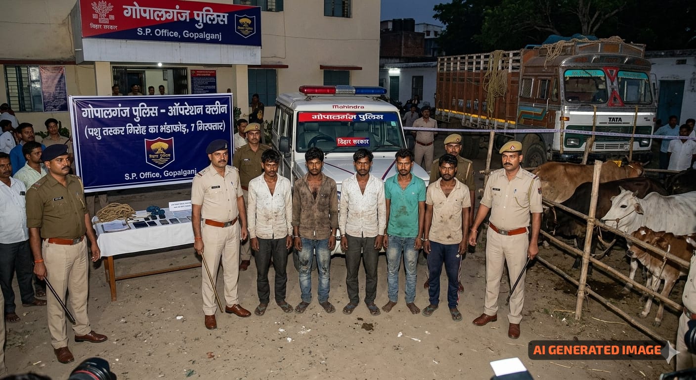 गोपालगंज पुलिस का ‘ऑपरेशन क्लीन’: पशु तस्कर गिरोह का भंडाफोड़, 7 गिरफ्तार।