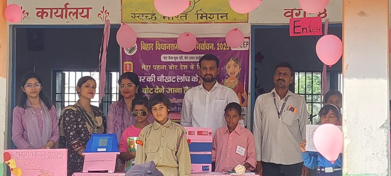 स्वीप कोषांग की ओर से मतदाता जागरूकता के लिए चलाये जा रहे अभियान में कुचायकोट प्रखंड के उत्क्रमित मध्य विद्यालय करमैनी मुहब्बत में पिंक बूथ का संचालन की झांकी प्रस्तुत की गई. गौरतलब है कि पिंक बूथ का संचालन का उद्देश्य महिलाओ को मतदान करने के लिए प्रेरित करना है. कार्यक्रम में विद्यालय की छात्राओं ने चुनाव कर्मियो के कर्तव्यो का सफल मॉडल प्रस्तुत किया.