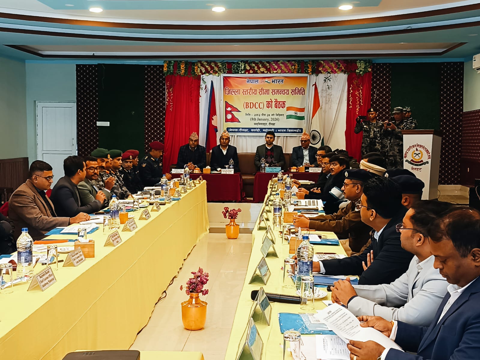 भारत–नेपाल सीमा पर शांति, सुरक्षा एवं आपसी सहयोग को और अधिक सुदृढ़ करने के उद्देश्य से आज नेपाल के रौतहट जिले के चंद्रनिगाहपुर में भारत–नेपाल जिला सीमा समन्वय समिति (BDCC) की एक महत्वपूर्ण बैठक सौहार्दपूर्ण एवं सकारात्मक वातावरण में सम्पन्न हुई।