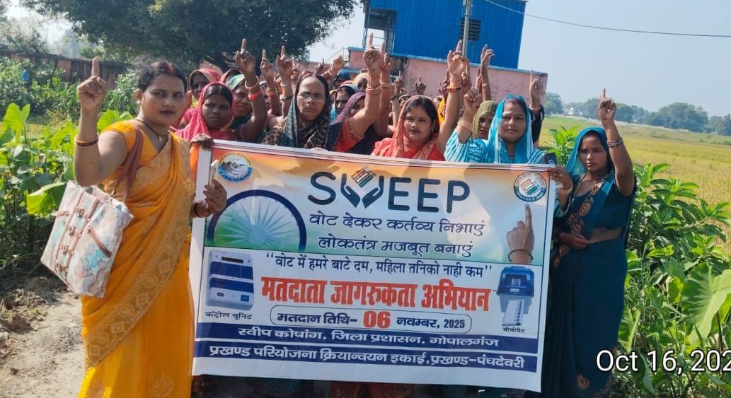 “कनिया बहुरिया बूथ पर जाइ- जाके अपन वोट गिराई”, “गोपालगंज जगमग हो जाई- 6 नवंबर के वोट गिराई” जैसे भोजपुरी स्लोगनों को जब जीविका दीदियां गीत के लय में गाने लगी, तो गांव के लोग देखने लगे. जीविका दीदियों ने लोगों को जागरुक करते हुए कहा कि 6 नवंबर को सब काम छोड़कर पहले बूथ पर पहुंचे और अपना वोट दें, क्योंकि यह आपका अधिकार है. कार्यक्रम में दर्जनों जीविका दीदियां मौजूद रही