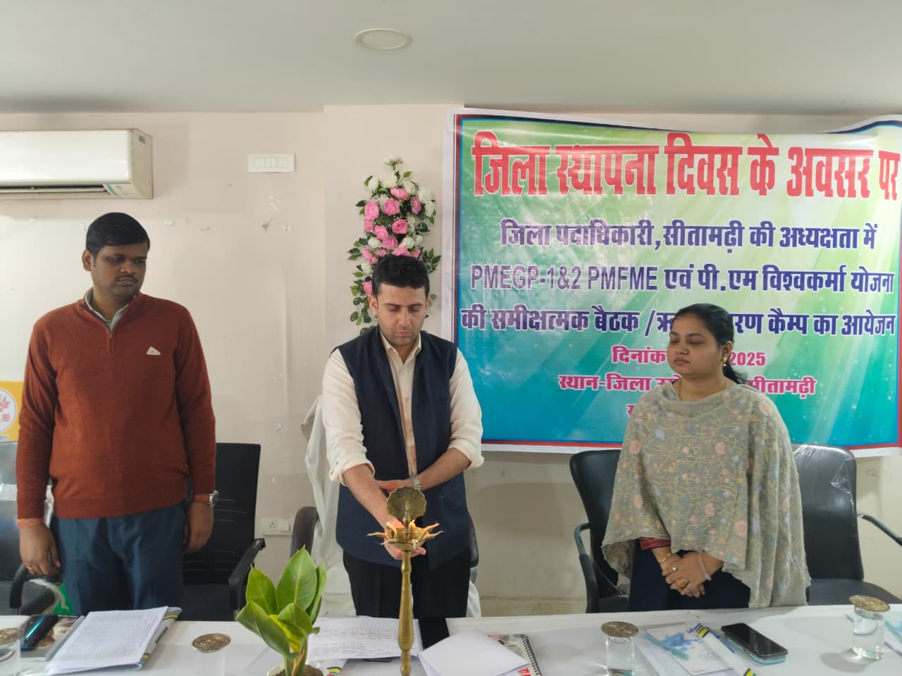 54 वें० सीतामढी जिला स्थापना दिवस 2025 के कैलेन्डर के अनुसार जिला उद्योग केन्द्र, सीतामढी के सभागार में PMEGP/PMFME/PM VISHWAKARMA योजना का ऋण वितरण कैम्प का आयोजन दिनांक 06.12.2025 को किया गया। कैम्प में प्रधानमंत्री रोजगार सृजन कार्यक्रम (PMEGP-1&2), प्रधानमंत्री सूक्ष्म खाद्य उद्यम उन्नयन योजना (PMFME) एवं प्रधानमंत्री विश्वकर्मा योजना के लाभुकों के बीच ऋण की स्वीकृति एवं वितरण का कार्य किया गया।