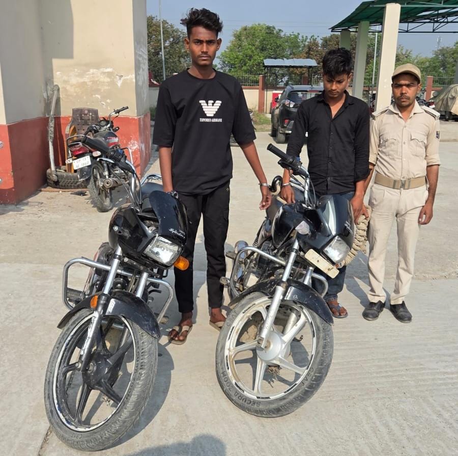 नौतन पुलिस ने चोरी की बाइक के साथ दो को किया गिरफ्तार