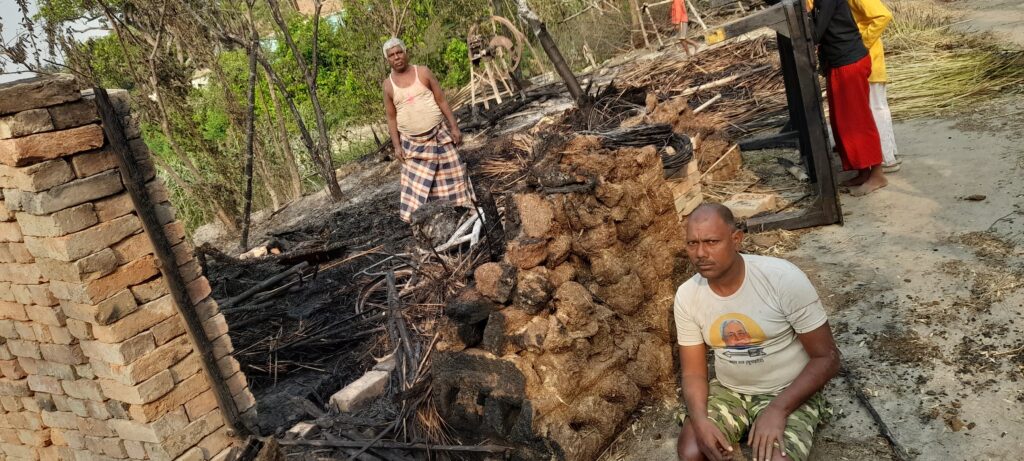 चफवा में झोपड़ीनुमा दो घरों में आग लगने से एक लाख की सम्पत्ति जलकर राख