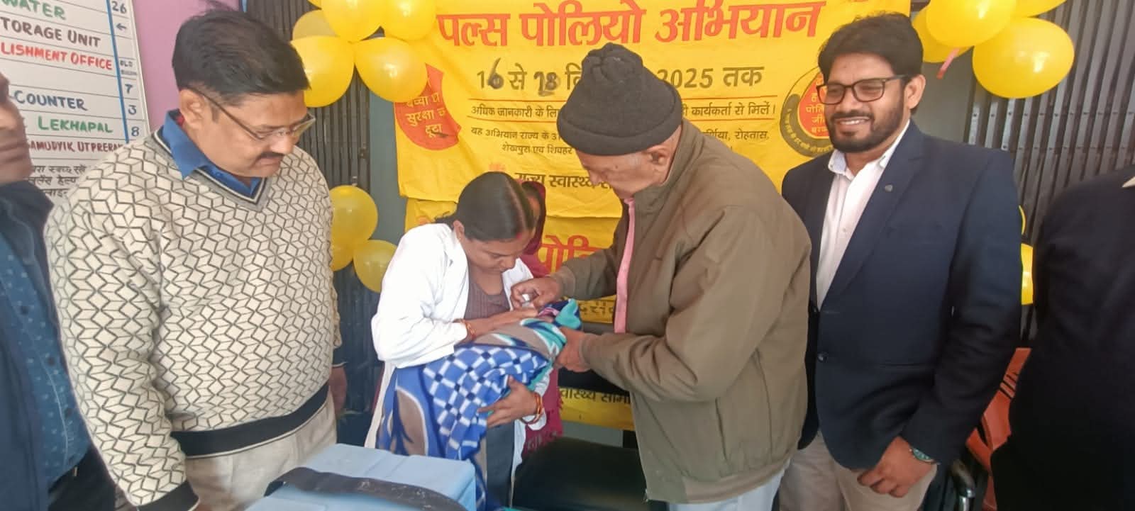 दरभंगा 16 दिसंबर 2025,:-पल्स पोलियों अभियान जिला स्तरीय कार्यक्रम का उद्घाटन डीआईओ डॉ.अमरेंद्र कुमार मिश्रा ने एक नवजात बच्चे को पोलियो खुराक पिलाकर सी.एच.सी. बहादुरपुर स्वास्थ्य केंद्र में किया।