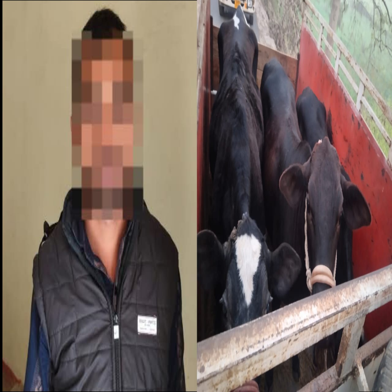 तीन मवेशियों के साथ तस्कर गिरफ्तार, पिकअप वाहन जब्त