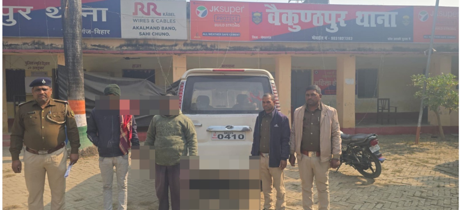 वैकुण्ठपुर थाना कांड संख्या 04/2026 (दिनांक 05.01.2026) में चोरी गई एक स्कॉर्पियो वाहन को पुलिस ने बड़ी कार्रवाई करते हुए मुजफ्फरपुर जिले के साहेबगंज पेट्रोल पंप से बरामद कर लिया है। इस मामले में पुलिस ने दो अप्राथमिकी अभियुक्तों को गिरफ्तार किया है।