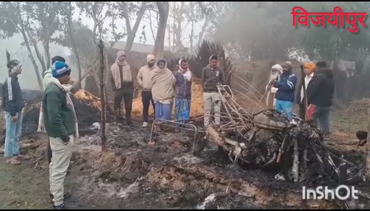 विजयीपुर के चौमुख गांव में रिहायशी झोपड़ी में संदिग्ध आगजनी, लाखों की संपत्ति स्वाहा