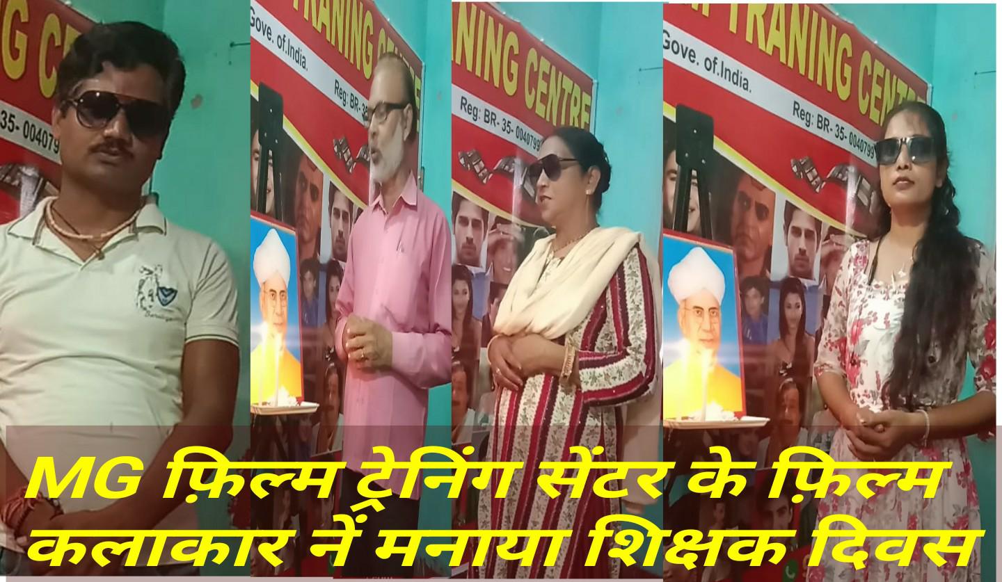 सिवान जिले के सदर प्रखंड के धनौती पंचायत के धनवती गांव में खुला भारतीय सिनेमा के ड्रामा ट्रेनिंग सेंटर जिसका नाम एमजी फिल्म ट्रेनिंग सेंटर से जाना जा रहा है वही इस फिल्म ट्रेनिंग सेंटर से अनगिनत बच्चे भारतीय सिनेमा के ड्रामा में शामिल होने के लिए ट्रेनिंग ले रहे हैं जिसका नामांकन चल रहा है इस ट्रेनिंग सेंटर के प्रबंधक ने जानकारी देते हुए बताया कि हमारे यहां भारतीय सिनेमा के सभी विषयों की ट्रेनिंग दी जाती है उचित प्रशिक्षण की भी व्यवस्था की गई है जिसमें पढ़ने के बाद उन्हें उच्च स्तरीय प्रशिक्षण मिल सके वही आज शिक्षक दिवस पर हमारे ट्रेनिंग सेंटर के सभी कलाकार छात्रों ने शिक्षक दिवस मनाया जिसमें उपस्थित रहे मां गायत्री फिल्म प्रोडक्शन के निर्माता एस एल एस बसंत , इस प्रोडक्शन के मैनेजर पन्नालाल कुशवाहा, मिडिया प्रभारी फिरोज अंसारी , और एमजी फिल्म ट्रेनिंग सेंटर के छात्र, छात्रा नीपू कुमारी ,अनिल प्रजापति, राजकुमारी देवी ,पल्लवी ओझा ,सुमन कुमारी ,विनायक सिंह ,चंद्रमा यदुवंशी, सहित सभी छात्र इस मौके पर रहे उपस्थित वही ट्रेनिंग सेंटर के शिक्षकों को बुके और गिफ्ट देकर किया सम्मानित भारतीय सिनेमा के मॉडलिंग करियर अपना कदम रखने वाली छात्र निप्पू कुमारी ने बताया कि हमारे शिक्षक गुरु हैं इनसे हम लोग को मार्गदर्शन मिल रहा है अच्छी क्लास अच्छी व्यवस्थाएं और अच्छी मार्गदर्शन मिल रही है हम दिल से धन्यवाद करते हैं कि जो हम कलाकार नहीं जानते थे भारतीय सिनेमा के बारे में वह यहां से जानकारियां हमें मिल रही है वही अनिल कुमार प्रजापति उन्होंने बताया कि हम वर्षो से कला क्षेत्र में कार्य करते आ रहे हैं लेकिन उच्च स्तरीय से प्रशिक्षण हमें नहीं मिल पा रहा था भारतीय सिनेमा के बारे कि हमें क्या करना चाहिए किन बातों को ध्यान में रखना चाहिए जो यहां ट्रेनिंग सेंटर खुलने से हम सभी को जानकारी उपलब्ध हो रही है वहीं छात्रा राजकुमारी देवी ने कहा कि हम कला क्षेत्र में अपना प्रदर्शन करते आ रही हूं और कॉमेडियन या छोटे-छोटे फिल्मों के लिए काम की हूं लेकिन हमें वह चीज की जानकारी नहीं मिल पा रही थी कि अपने कला को कैसे प्रदर्शित करें वही विकास पांडेय को धन्यवाद देते हुये कहा कि हमें मार्गदर्शन आपने किया और इस ट्रेनिंग सेंटर में हमें नामांकन कराकर उच्च शिक्षा दिलाने का काम किया , इस फिल्म ट्रेनिंग सेंटर से भारतीय सिनेमा के सभी विषयों की पढ़ाई प्रशिक्षण दी जाती है