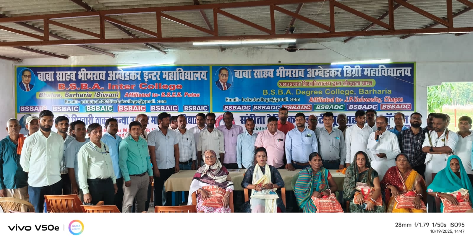 बड़हरिया मुख्यालय के बाबा साहब भीमराव अम्बेडकर महाविद्यालय के सभागार कक्ष मे हार्षोलाश के साथ दीपावली सह शिक्षक सम्मान समारोह मनाया गया । इस समारोह में समस्त शिक्षक एवं पत्रकार बंधुओं को अंगवस्त्र, मिठाई के साथ प्रकाश का पर्व दीपावली एवं लोक आस्था का महान पर्व छठ पूजा पर समस्त शिक्षकों एवं शिक्षकेत्तर कर्मी को शुभ कामनाएं एवं धन्यवाद अभिवादन किया गया प्राचार्य सह सचिव प्रो ई आलोक कुमार के द्वारा दिया गया। प्रो आलोक कुमार ने कहा की समस्त छात्र/छात्राओं को दीपावाली के शुभ अवसर तथा प्रकाश के महान पर्व दीपावाली पर अच्छाई की जीत का प्रतीक दीपावली एवं लोक आस्था के महान पर्व छठ पूजा की हार्दिक बधाई एवं लोकतंत्र का के महान पर्व बिहार विधान सभा चुनाव में सभी लोग मतदान करने की हार्दिक शुभकामनाएं दिया गया। समारोह में प्राचार्य प्रो ई आलोक कुमार के साथ मंच संचालनकर्ता प्रो राजेन्द्र रावत, प्रो सतेन्द्र कुमार अभय,प्रो राजेश राम, प्रो उपेन्द्र कुमार, प्रो नज़्हत फातमा,प्रो इंद्रजीत राम, प्रो अन्नी कुमारी, प्रो महेश राम, प्रो शशिकांत मिश्रा,प्रो मो फारूक, प्रो नीलकांत सिंह निराला, प्रो मोतीचंद्र साह, प्रो परमेश्वर राम, प्रो पिंटू कुमार यादव, प्रो अरविन्द शर्मा, प्रो अनिल कुमार सिंह, प्रो अजय यादव प्रधान सहायक अजित कुमार यादव, धीरज कुमार पटेल, हरेंद्र कुमार यादव, धर्मजीत कुमार यादव, मोहन मांझी,संजय कुमार यादव, मो आलम,जगलाल यादव, बीरबल गिरी,जगजीतन शर्मा, बबीता देवी, सुनैना देवी, आशा देवी, चंद्रावती, विनोद शर्मा सहित शिक्षाविद् एवं सभी कर्मी को अंग वस्त्र और मिठाई देकर सम्मानित किया गया l