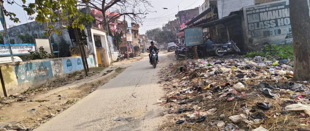 अस्पताल के द्वार पर ‘बीमारी’ का पहरा: पीएचसी मांझा के सामने कचरे का अंबार, संक्रमण का बढ़ा खतरा।