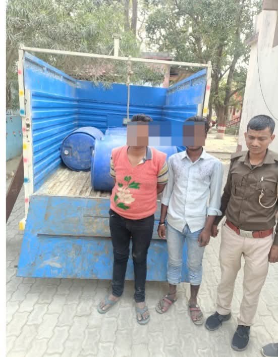 गोपालपुर थाना क्षेत्र में पुलिस ने बड़ी कार्रवाई करते हुए 1100 लीटर स्प्रिट के साथ दो तस्करों को गिरफ्तार किया है। गुप्त सूचना के आधार पर वाहन जांच के दौरान ग्राम कोड़नरवा स्कूल के समीप एक पिकअप वाहन को रोका गया। तलाशी लेने पर वाहन से भारी मात्रा में स्प्रिट बरामद की गई।