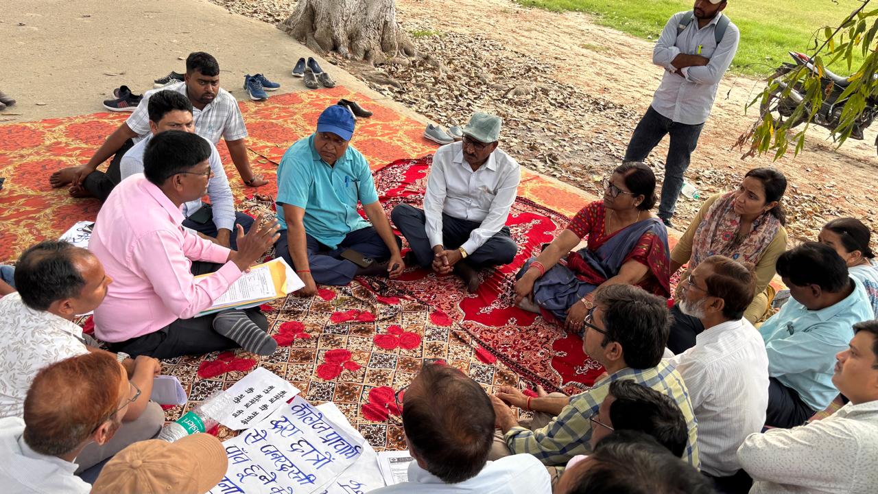 शिक्षक संघ के अध्यक्ष डॉ धनंजय यादव ने बताया कि जांच दल के अपील, छात्रहित और माननीय कुलपति के सकारात्मक आश्वासन को ध्यान में रखते हुए सोमवार तक के लिए स्थगित किया गया है। मंगलवार को शिक्षकों की जेनरल बॉडी मीटिंग में अगला कदम उठाने के संबंध में निर्णय लिया जाएगा। मौके पर शिक्षक संघ के अध्यक्ष डॉ धनंजय यादव, उपाध्यक्ष डॉ सत्येंद्र कुमार सिंह, सचिव डॉ पवन कुमार,डॉ सुरुचि उपाध्याय, डॉ संजय कुमार, आशुतोष उपाध्याय, डॉ नावेद अंजुम, पंकज कुमार, प्रो. चंद्रभूषण सिंह, प्रो. कृष्णकांत प्रसाद, प्रो. अली इमाम, डॉ. एस.ए. खान, डॉ. टी.ए. नूर, डॉ. सुधीर कुमार राय, डॉ. अरविन्द कुमार, डॉ. सैयद रियाज़ हसन, डॉ अपर्णा पाठक, डॉ. मंजूर आलम, डॉ नसीम अंसारी, श्री प्रवीण कुमार, रुचिका जर्याल, डॉ रामानुज कौशिक, डॉ प्रभाकर निषाद, डॉ. आशुतोष शरण, पंकज कुमार, डॉ. मुरलीधर मणि त्रिपाठी, डॉ. प्रकृति राय, डॉ रवि कुमार, डॉ. दीपिका श्रीवास्तव, डॉ. बंदना कुमारी सोनी, डॉ. निर्भय कुमार राम सहित सभी शिक्षक शिक्षिकाएं मौजूद रहे ।
