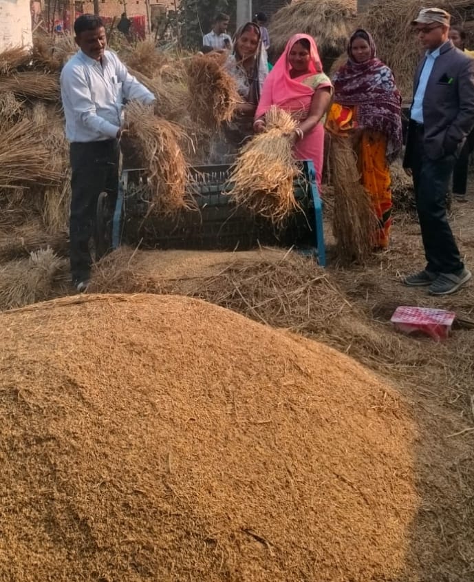 बड़हरिया प्रखंड अंर्तगत सुंदरपुर पंचायत के सुंदरी के टोला में गठित राधिका महिला खाद्य सुरक्षा समूह के अध्यक्ष फुलाती देवी के यहां धान के उत्पादन का निरीक्षण और पैड़ी थ्रैशर मोटर चालित से धान पिटाई का निरीक्षण किया गया। साथ में धान बेचने के लिए महिला किसानों को जागरूक और विस्तार पूर्वक जानकारी भी दी गई।